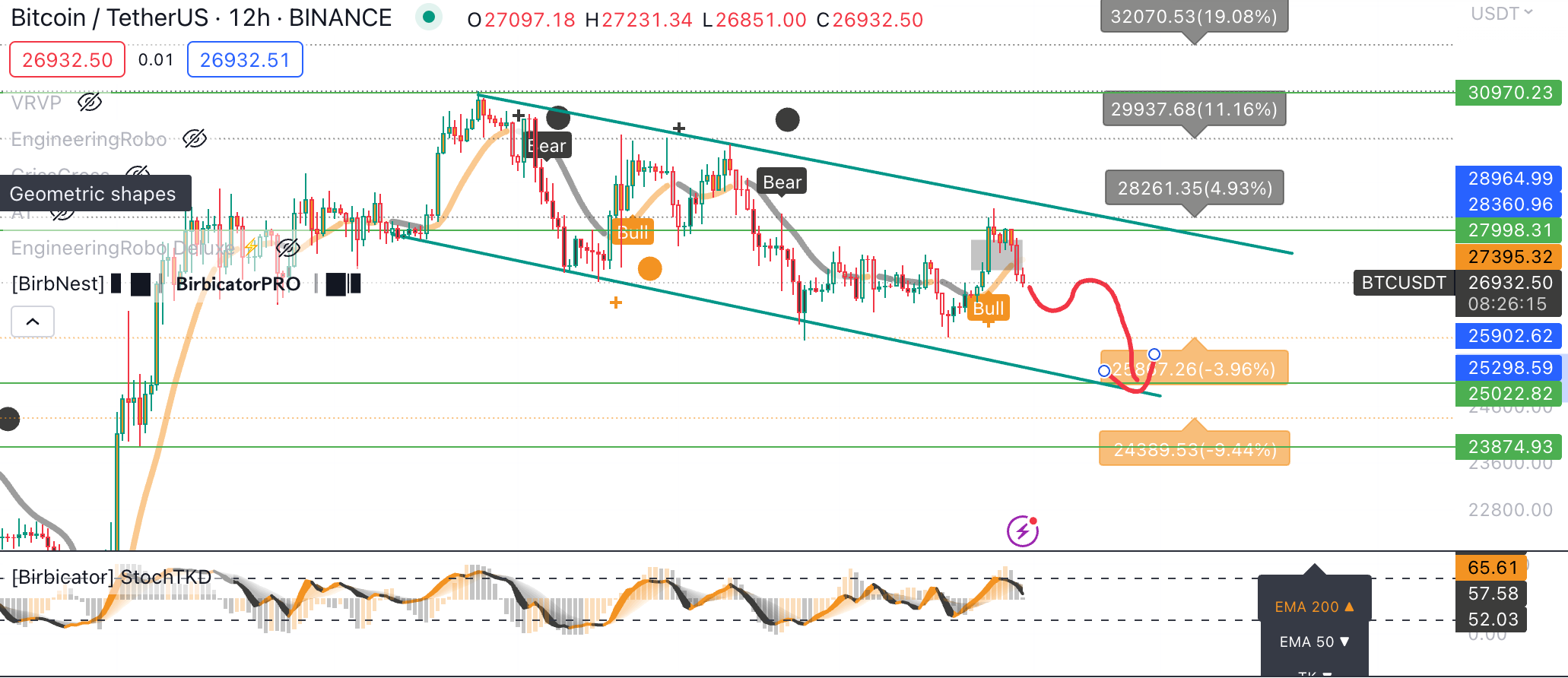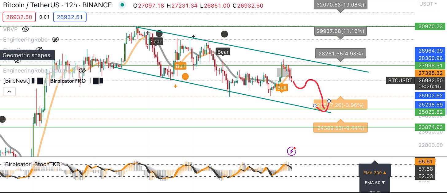 While Birb objectively follows the signals and BUYS when it says Buy (with a 2% risk stop-loss) I am personally short term bearish on Bitcoin breaking through resistance. The pump was a low volume weekend and we still have not retraced very much from the 30k top. Many of the other professional traders in my network are still anticipating a steep drop with targets anywhere from $25,000 to as low as $21,000 in a more dire situation. That will be the time to buy for the next leg up.